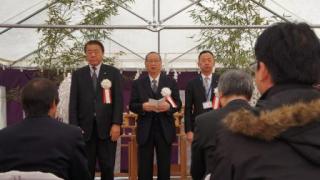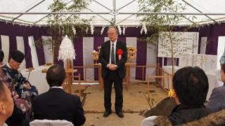 地鎮の儀などの神事、玉串奉奠などを終え、吉川理事長のご挨拶、工事関係者からは工事の安全などのご挨拶をいただき、新しいばんげ店の工事が着工されました。