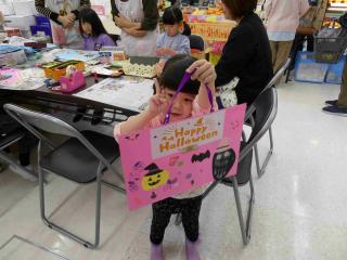同時開催として、「子育てひろばココたん」も開催され、「手形おばけタペストリー」づくりも行われました。
