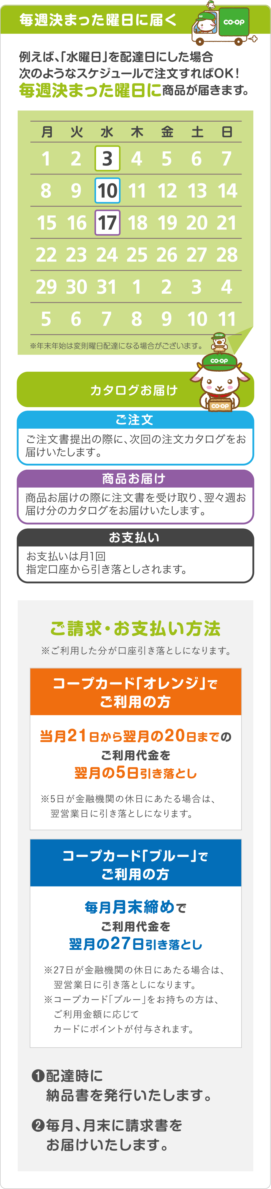 ご希望の日時・場所に生協職員がお伺いし、個人宅配などご利用に関して生協職員が詳しくご説明します。質問などありましたら、なんでもお気軽におたずねください。