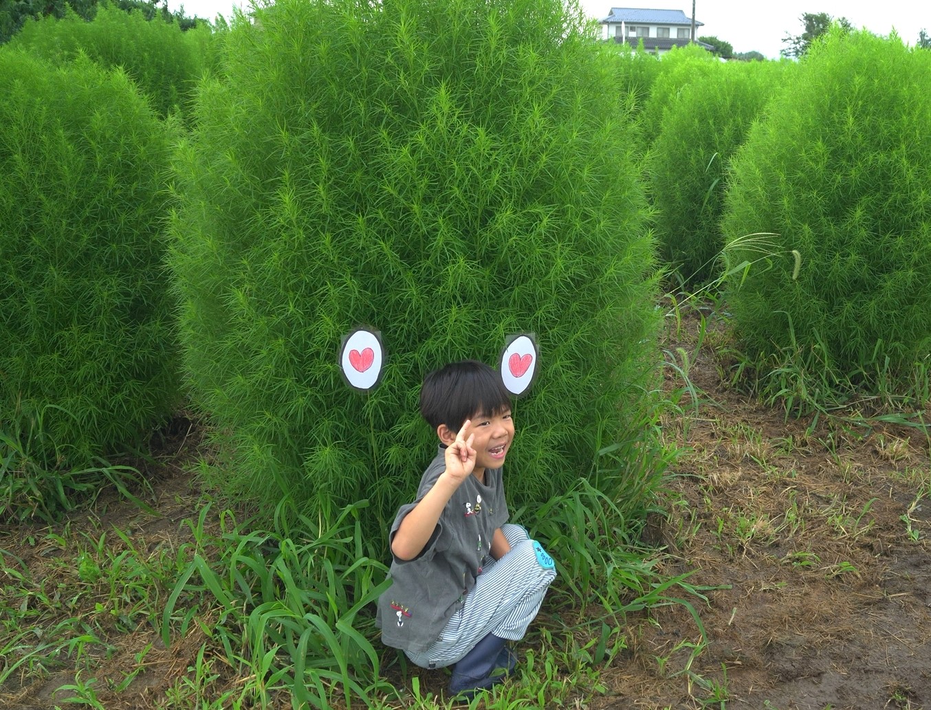 *コキアが大きかった。トウモロコシをさわって、おいしそうなかおりがした。