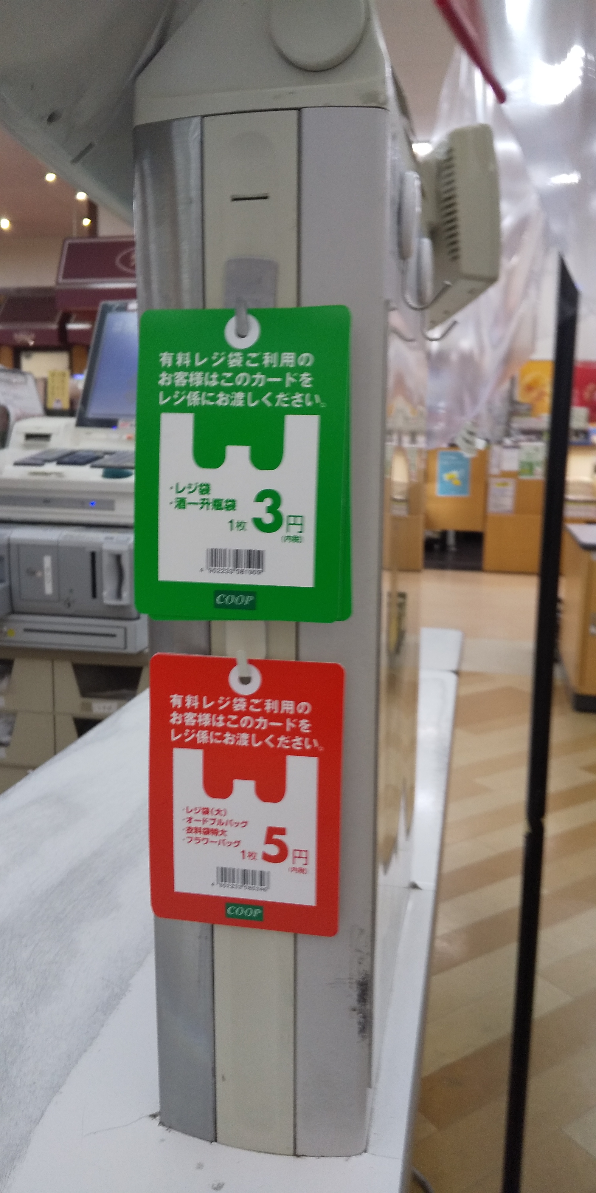 店舗で販売しています。なおレジ袋が必要な方は、1枚3円と5円で販売