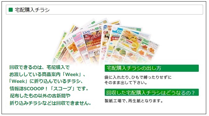 宅配購入で配布したもの以外の古新聞や折り込みチラシ