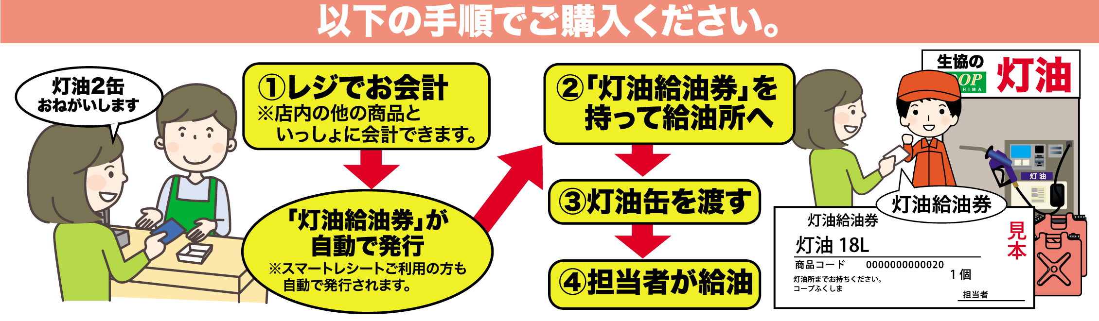 4.灯油給油券を持って給油所(灯油販売所)へお越しください。