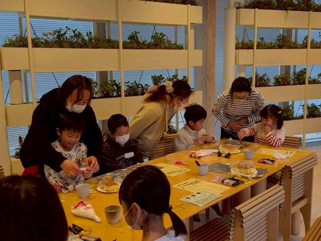 チョコペンで絵を書いたり、マーブルチョコで飾り付けをしたりとみなさん楽しまれていて