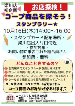 9月11日(水)コープふくしま桑折店にてお店探検!コープ商品を探そう★スタンプラリーを開催しました。親子2組が参加され、目印のふくちゃんを探し楽しみながらコープ商品を知っていただくいい機会になりました。探すのが大変だったけど楽しかったのでまたやってほしいと言っていただいたので、また企画したいと思いま...