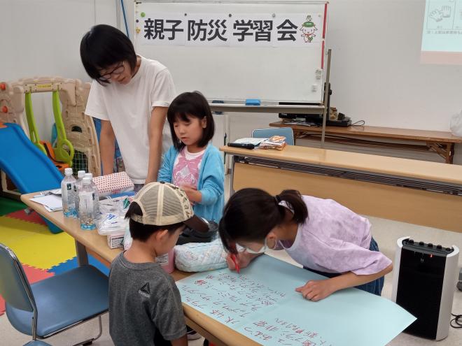 おこさんには防災クイズと救援物資ジェスチャーゲームで楽しんでいただきました。