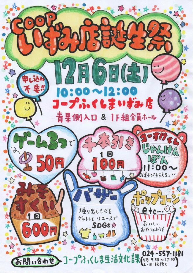 12/6(土)コープふくしまいずみ店にて「いずみ店 誕生祭」を開催します!