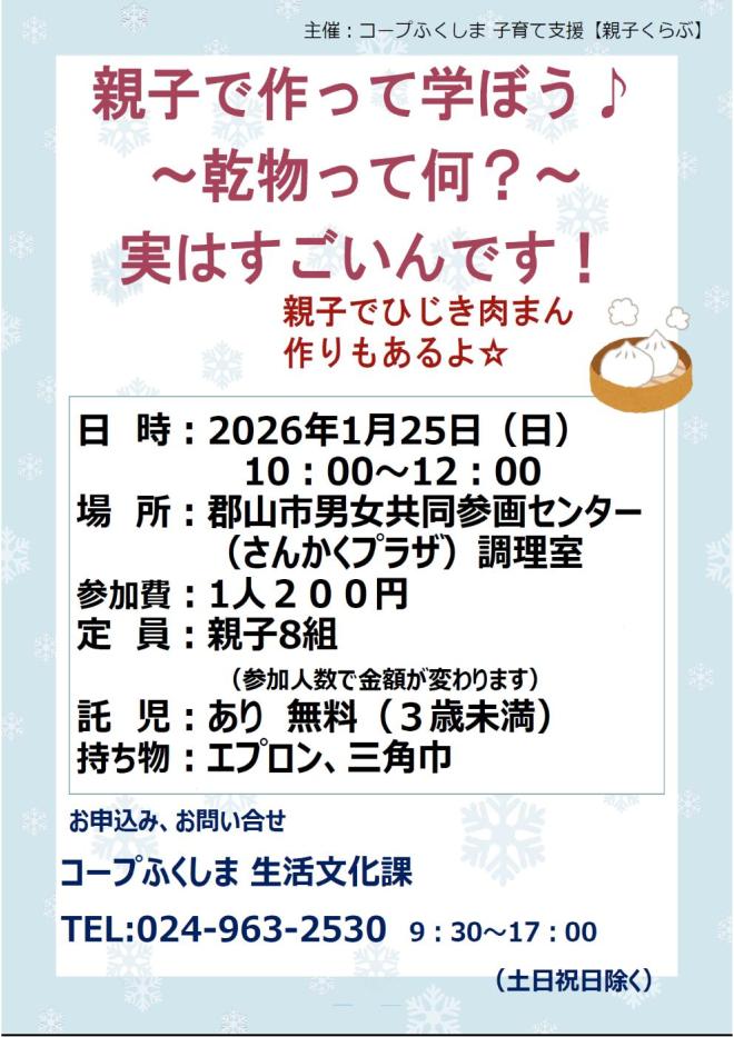 【募集中】 親子で作って学ぼう ~乾物って何?~