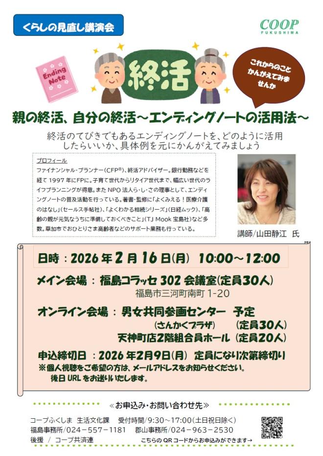 【お知らせ】くらしの見直し講演会 『終活』 親の終活・自分の終活 ~エンディングノートの活用法~